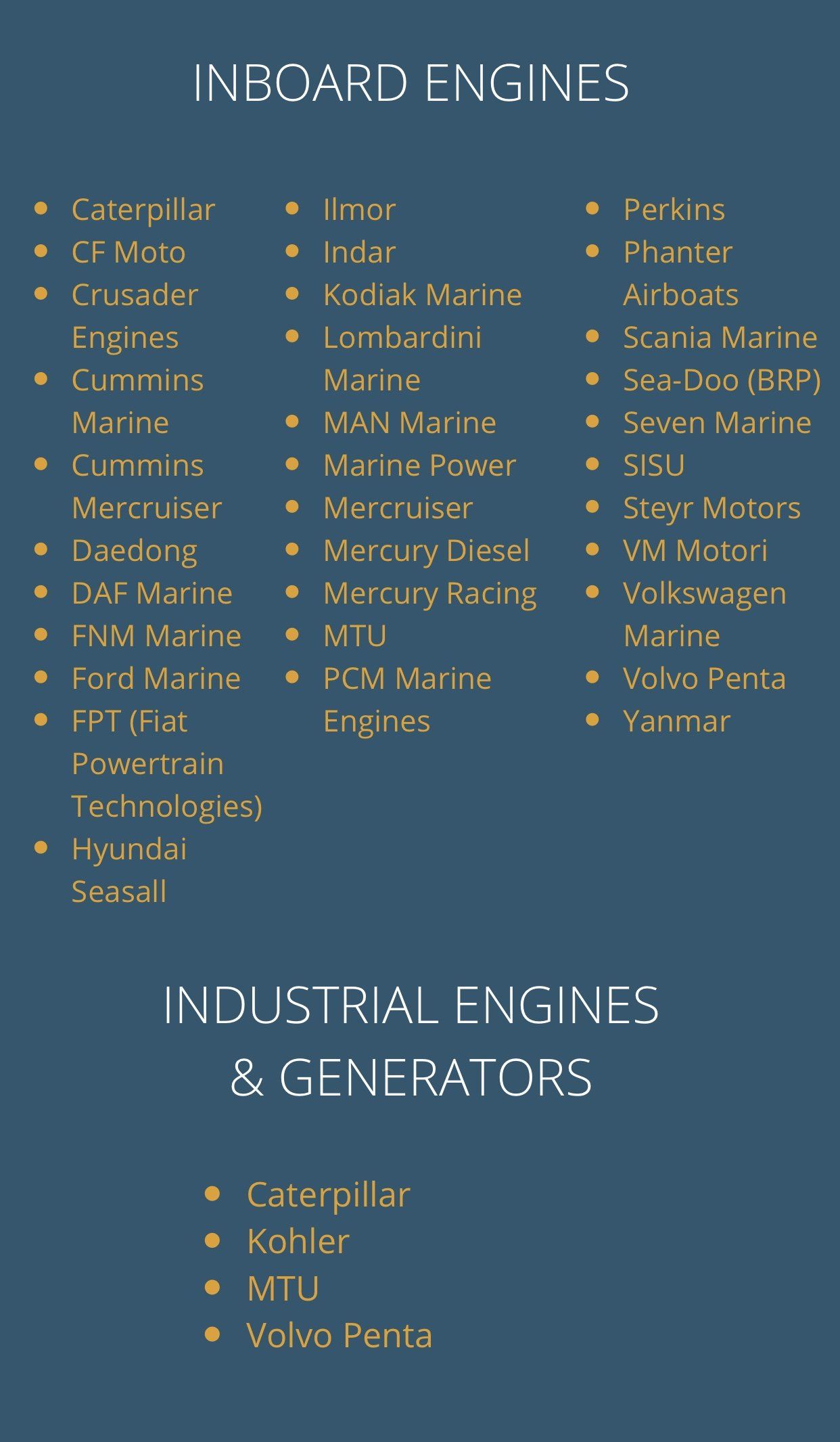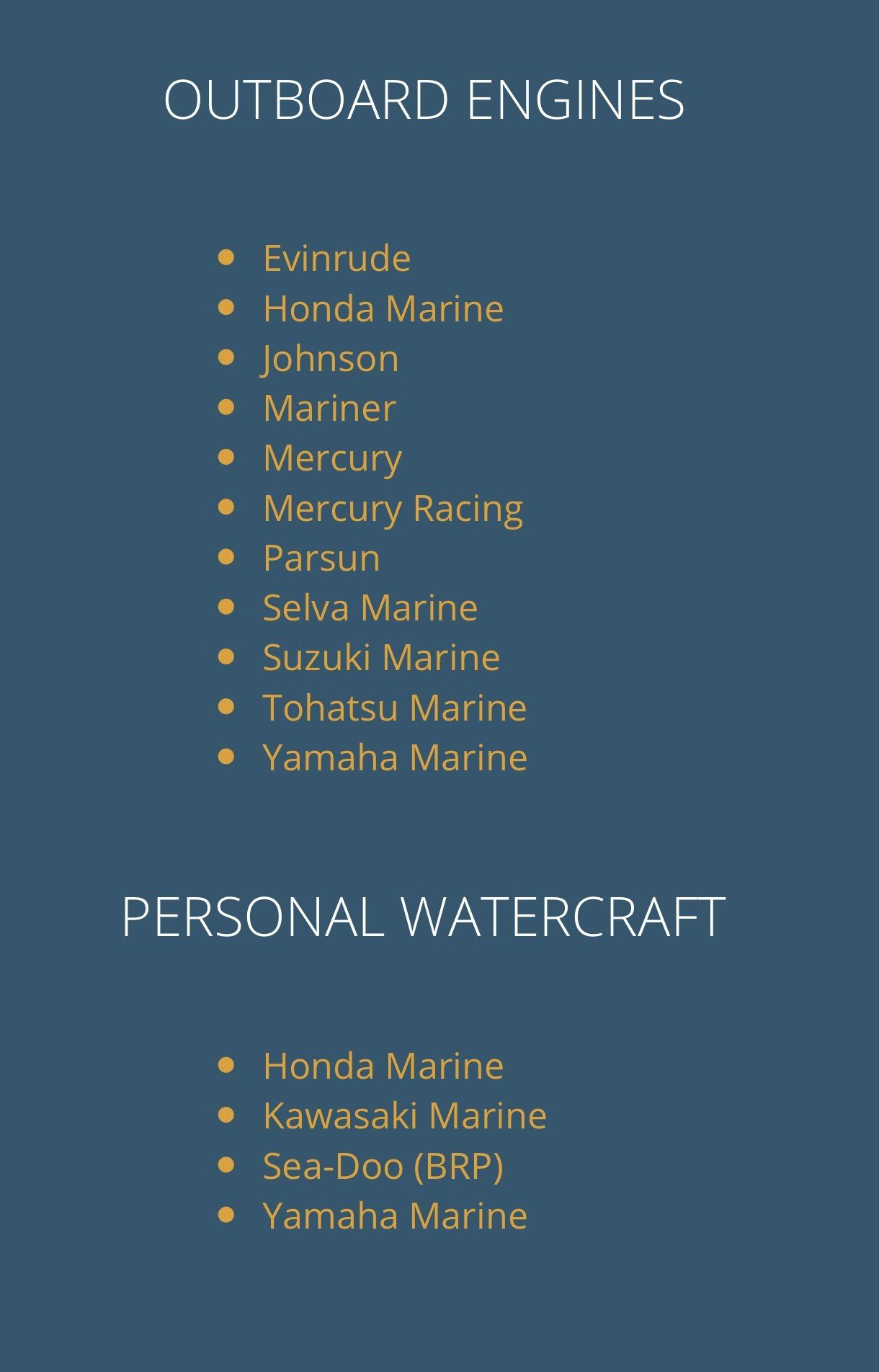 We specialize in the following gas and diesel inboard & outboard and jet ski engines: